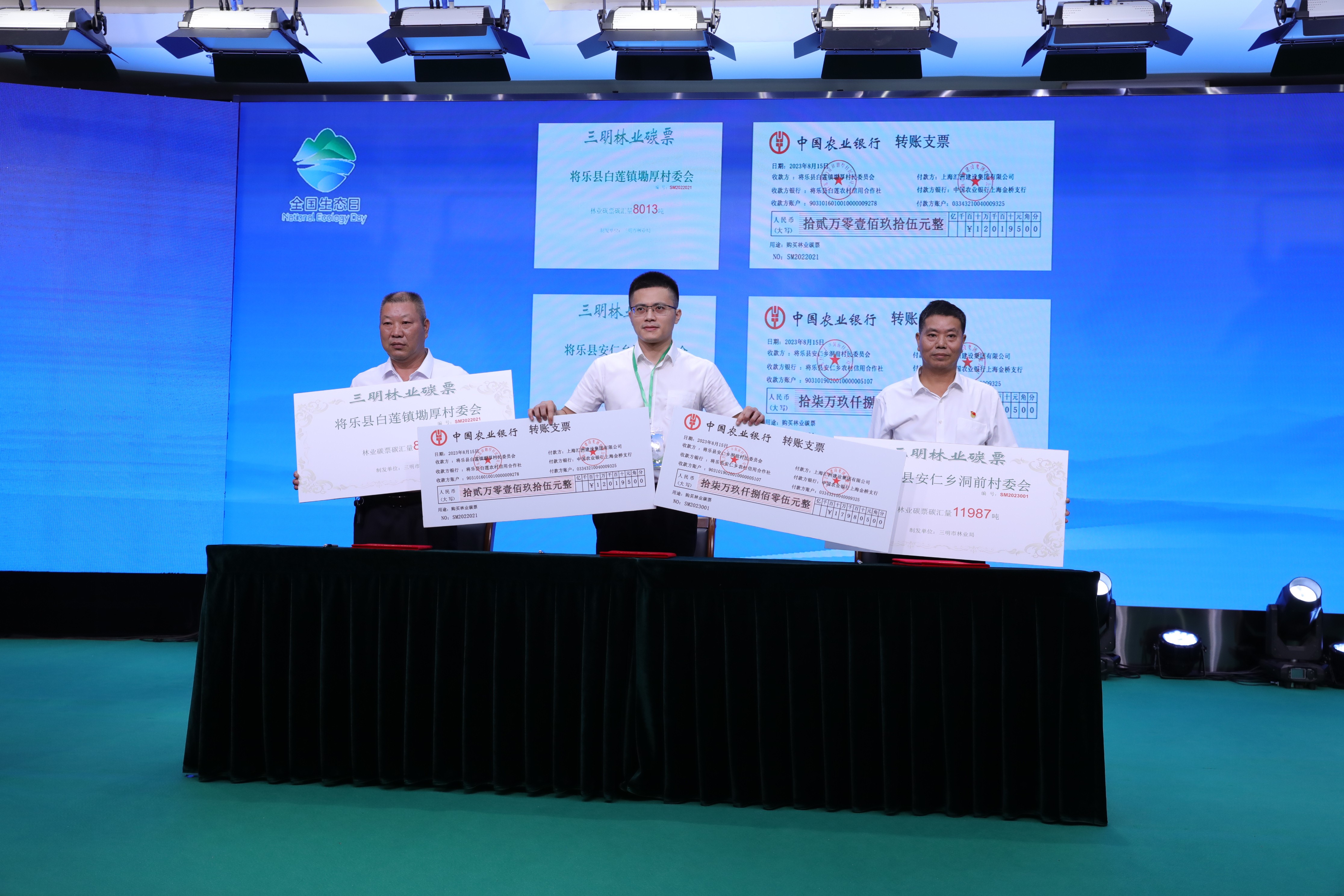 2023年8月15日全國生態(tài)日福建活動在將樂縣常口村舉行。福建金森引薦上海匯州建設(shè)集團有限公司購買將樂縣白蓮鎮(zhèn)墈厚村及安仁鄉(xiāng)洞前村共計2萬噸林業(yè)碳票,完成全國首次林業(yè)碳票的跨區(qū)域銷售。